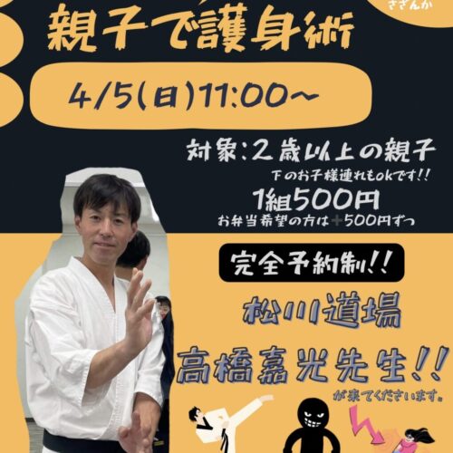 石巻大街道の「あべクリニック産科婦人科」「マタニティハウスさざんか」主催「親子で楽しく護身術」を開催させていただきます♪